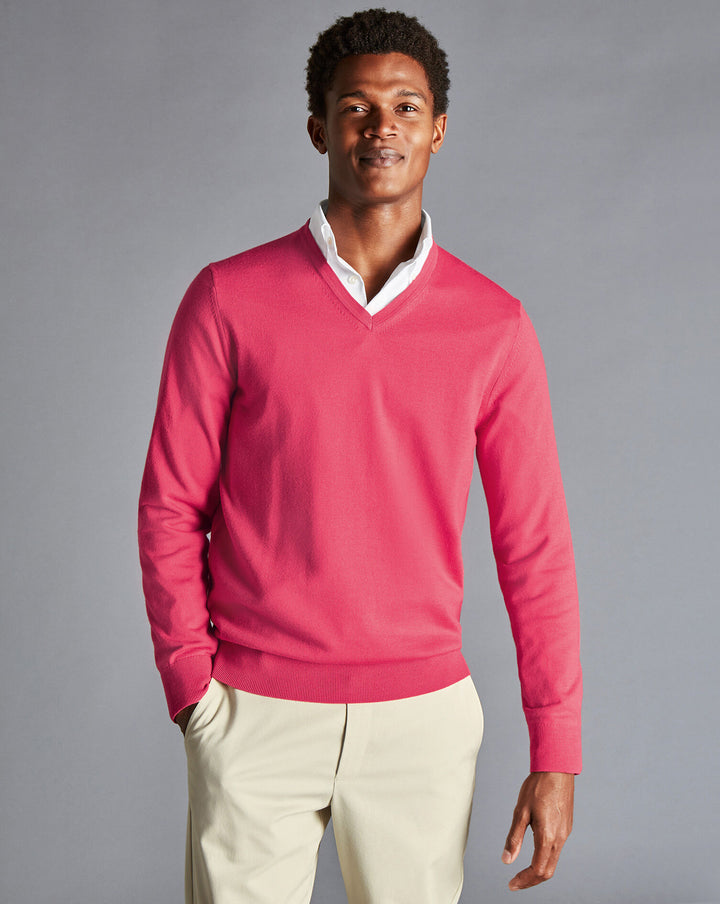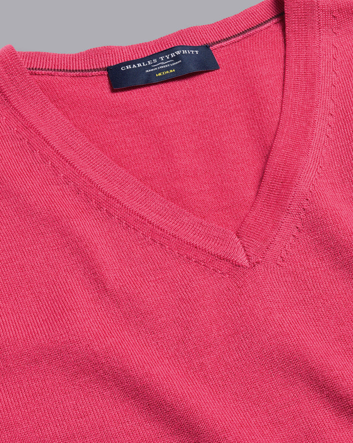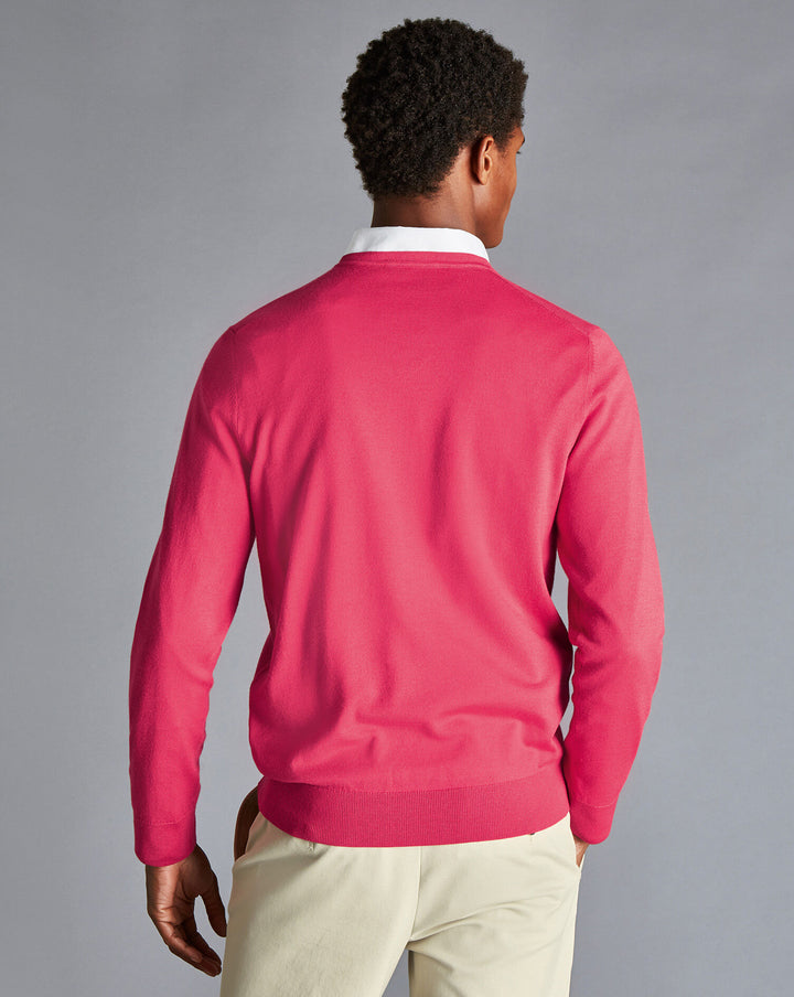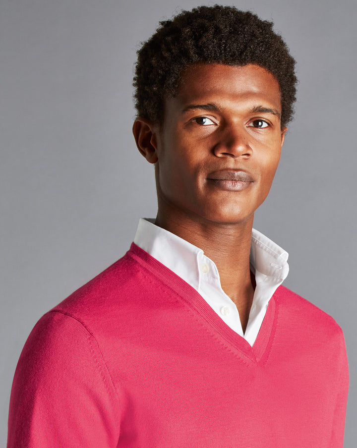 This refined-yet-casual V-neck is crafted from pure, Bright Pink Pure Merino V Neck Jumper Wool mark-certified Merino wool. Known as nature's performance fabric, Merino is comfortably breathable and temperature regulating - and has the softest handle of any knitwear. We've gently washed it for an even silkier finish, resulting in a supple jumper that subtly moulds itself to your body. The styling is simple, letting the fine fibers take center stage. There's traditional ribbing on the cuffs and hem and the understated neckline means this jumper looks superb when worn with a button-down shirt.