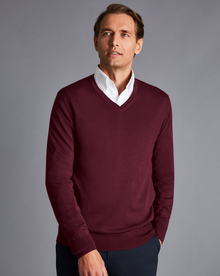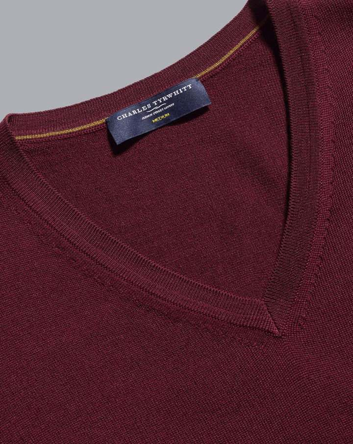 This refined-yet-casual V-neck is crafted from pure, Burgundy Red Pure Merino V Neck Jumper Wool mark-certified Merino wool. Known as nature's performance fabric, Merino is comfortably breathable and temperature regulating - and has the softest handle of any knitwear. We've gently washed it for an even silkier finish, resulting in a supple jumper that subtly moulds itself to your body. The styling is simple, letting the fine fibers take center stage. There's traditional ribbing on the cuffs and hem and the understated neckline means this jumper looks superb when worn with a button-down shirt.