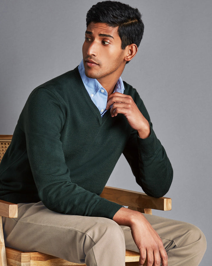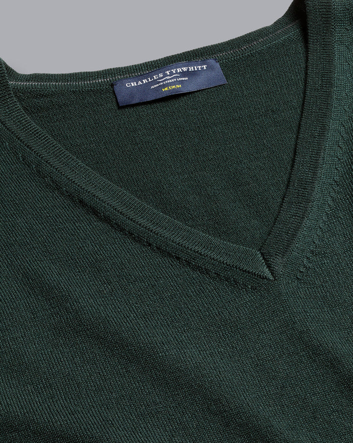 This refined-yet-casual V-neck is crafted from pure, Wool mark-certified Merino wool. Known as nature's performance fabric, Merino is comfortably breathable and temperature regulating - and has the softest handle of any knitwear. We've gently washed it for an even silkier finish, resulting in a supple jumper that subtly moulds itself to your body. The styling is simple, letting the fine fibers take center stage. There's traditional ribbing on the cuffs and hem and the understated neckline means this jumper looks superb when worn with a button-down shirt.