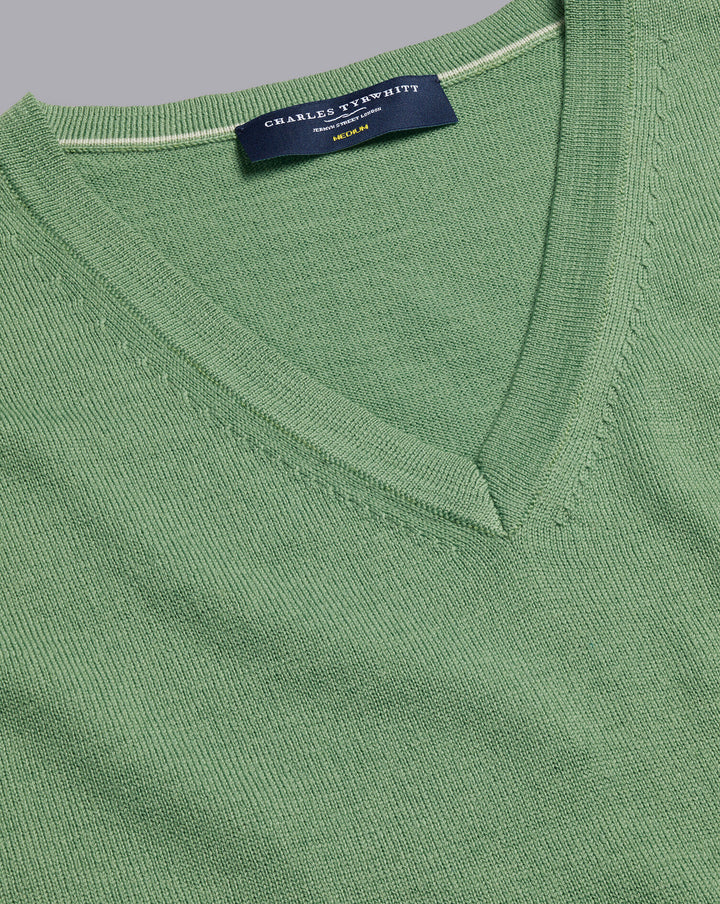 This refined-yet-casual V-neck is crafted from pure, Wool mark-certified Merino wool. Known as nature's performance fabric, Merino is comfortably breathable and temperature regulating - and has the softest handle of any knitwear. We've gently washed it for an even silkier finish, resulting in a supple jumper that subtly moulds itself to your body. The styling is simple, letting the fine fibers take center stage. There's traditional ribbing on the cuffs and hem and the understated neckline means this jumper looks superb when worn with a button-down shirt.