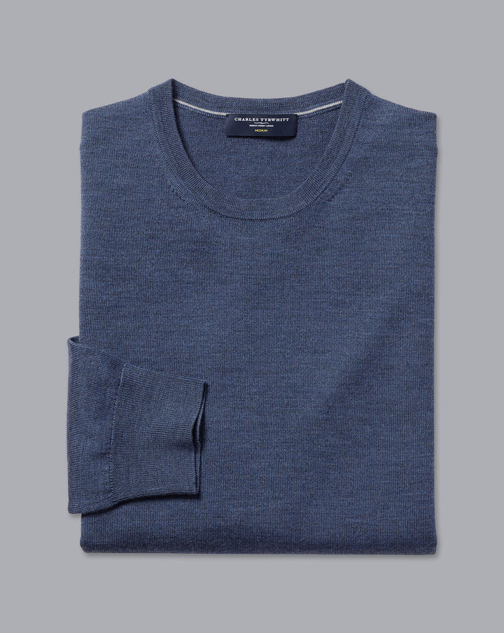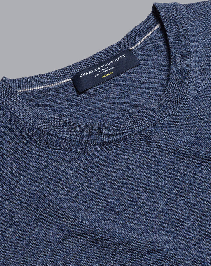 Indigo Blue Melange Pure Merino Crew Neck Jumper