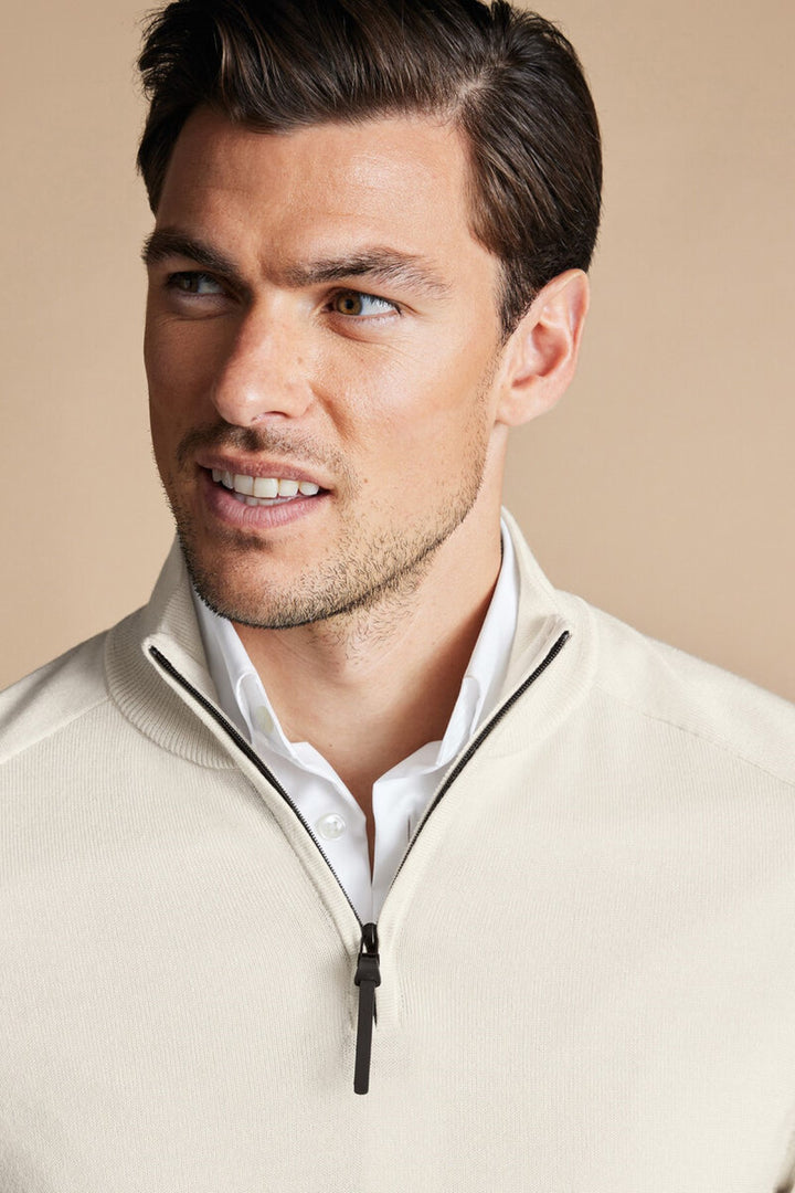 Ivory Performance Merino Zip Neck Jumper