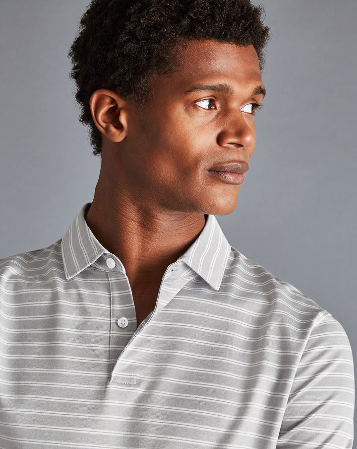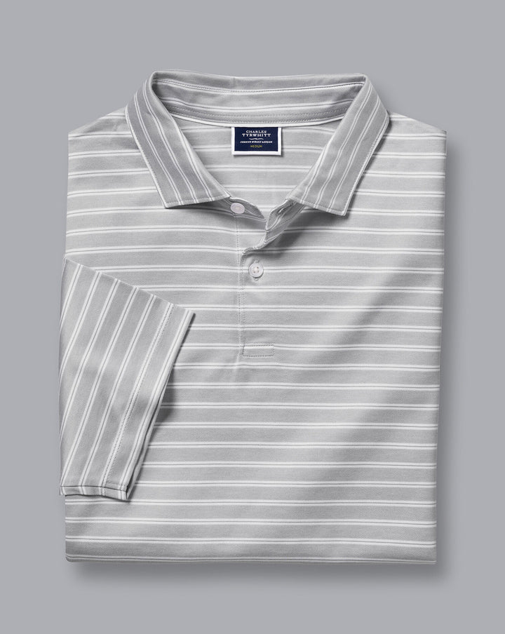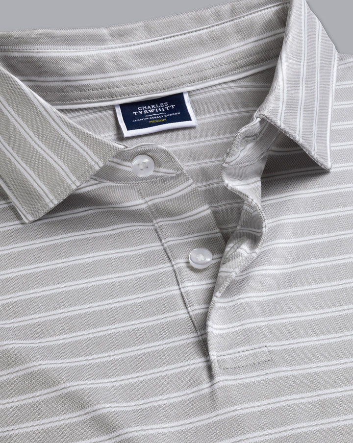 Light Grey Jacquard Stripe Short Sleeve Cotton Polo