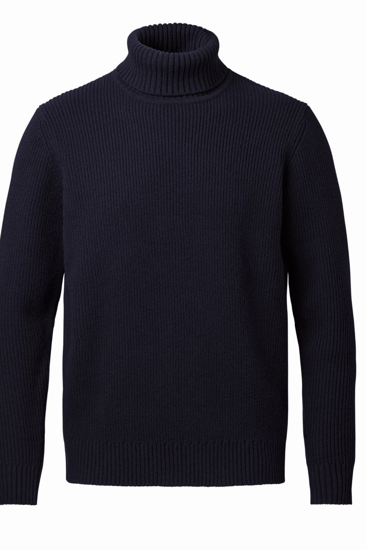 Navy Blue Chunky Merino Roll Neck