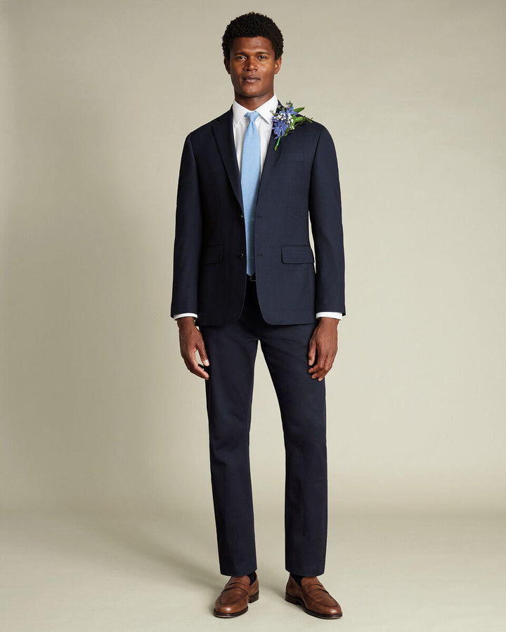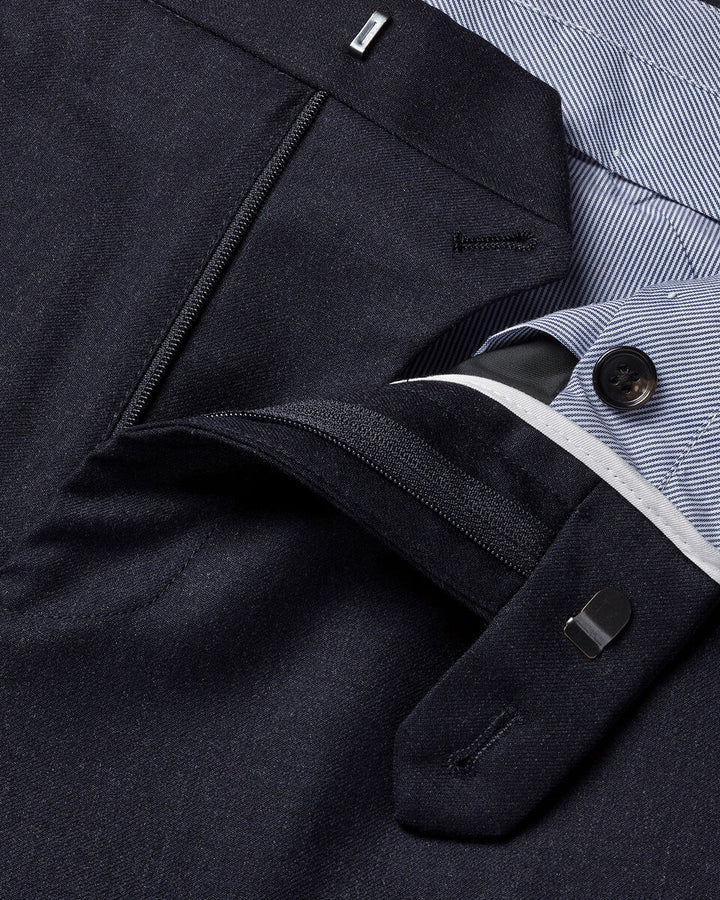 Navy Twill Wool Stretch Slim Fit Trousers