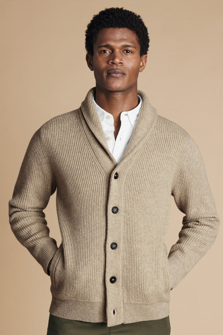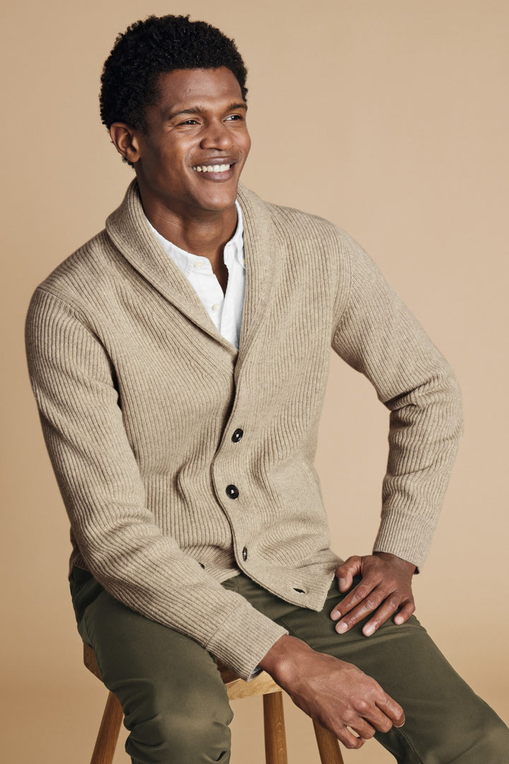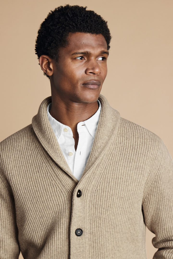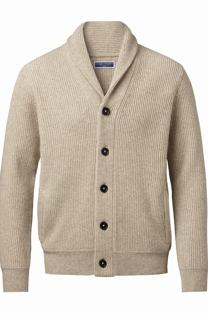 Oatmeal Chunky Merino Shawl Neck Cardigan