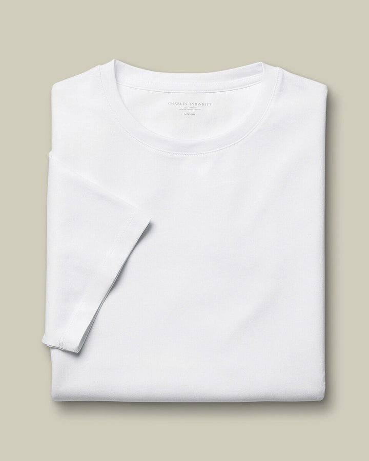 Made from naturally breathable and lightweight pure cotton, this tee keeps you feeling fresh and comfortable. It's sure to become a key wardrobe staple, thanks to its classic crew neck, short sleeves and a new and improved fit that offers a contemporary silhouette. On days running errands, wear yours with your favourite chinos and trainers. If you’re heading to events or dinner dates, layer it under a blazer and finish the look with chinos and brogues.