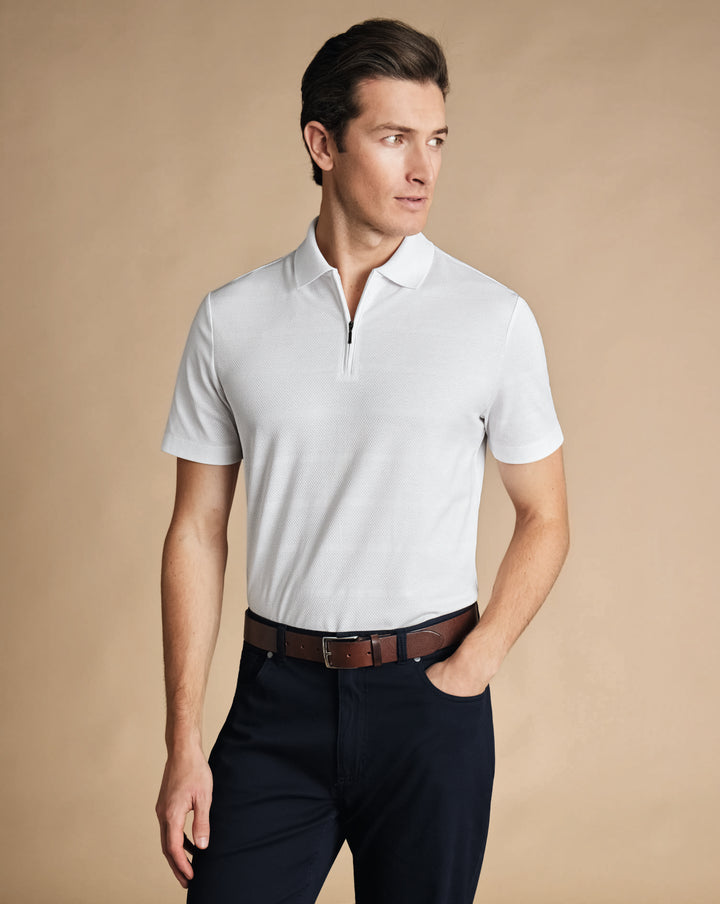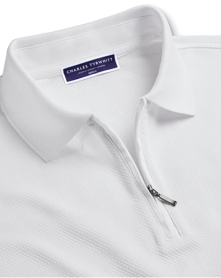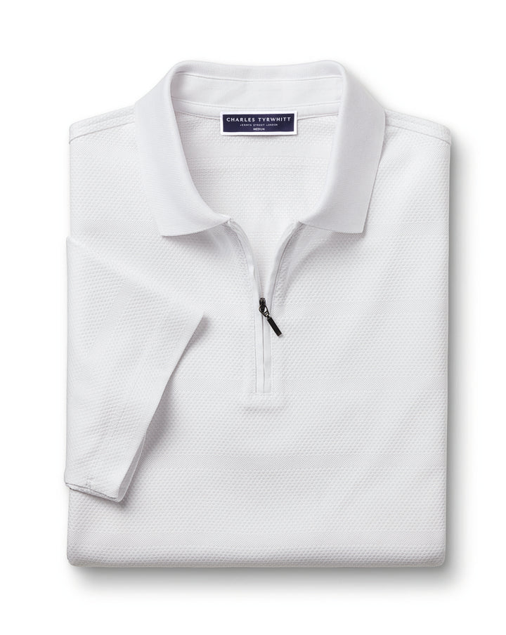 White Popcorn Textured Stripe Tyrwhitt Cool Polo