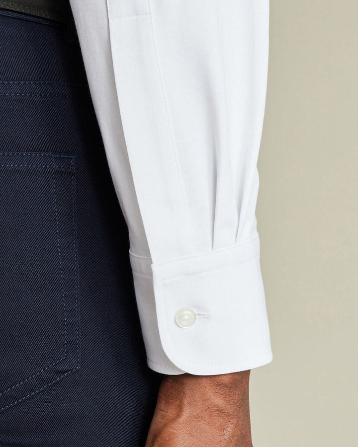 We've crafted this shirt in lightweight four-way stretch fabric, for all-day comfort and easy movement. Thanks to moisture-wicking properties, you'll stay fresh and comfortable during those extra busy moments. As it's incredibly easy to iron, it'll make your morning routine effortless. It features classic details such as a button-down placket and functional cuffs that can be rolled up if you prefer. Plus, a mercerized finish for that smooth, lustrous sheen.